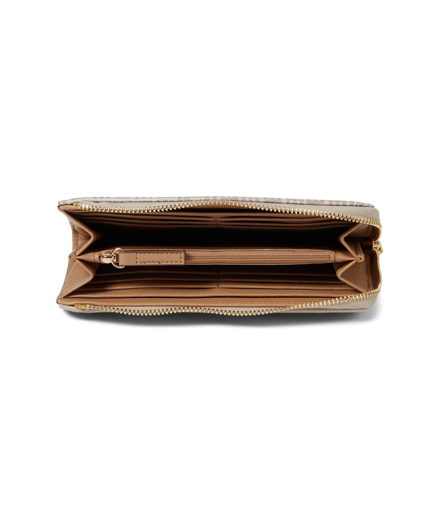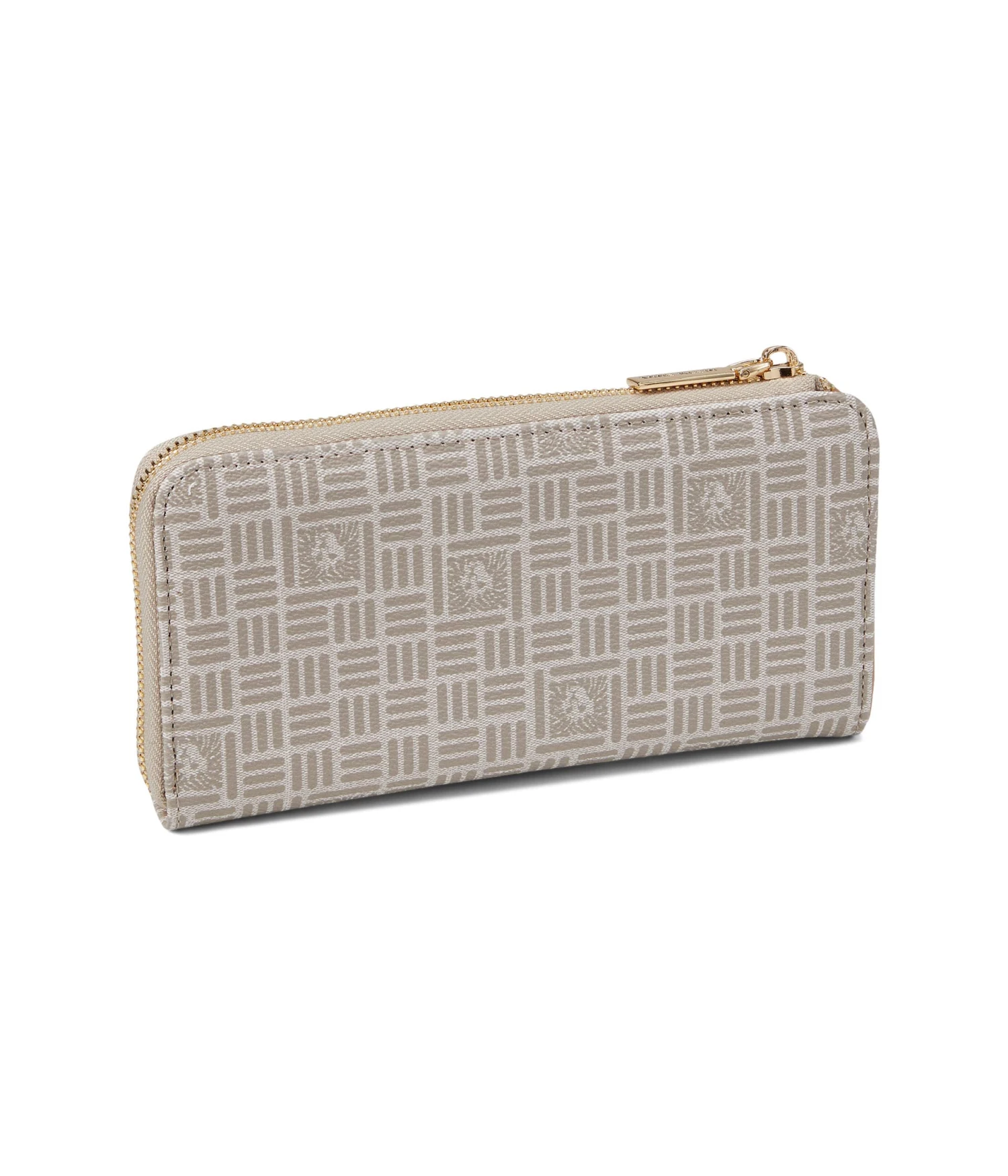 - Anne Klein® AK Logo Slim Zip Around boasts a neat and compact construction with repeated monogram print all over the exterior for a signature appeal and comes with plenty of interior pockets for functionality.
