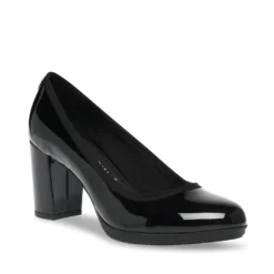 A simple pump with a chunky block heel and covered trim make comfort and class attainable.