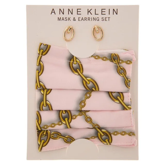 Anne Klein Chain-Print Face Mask & Earrings 2-Piece Set