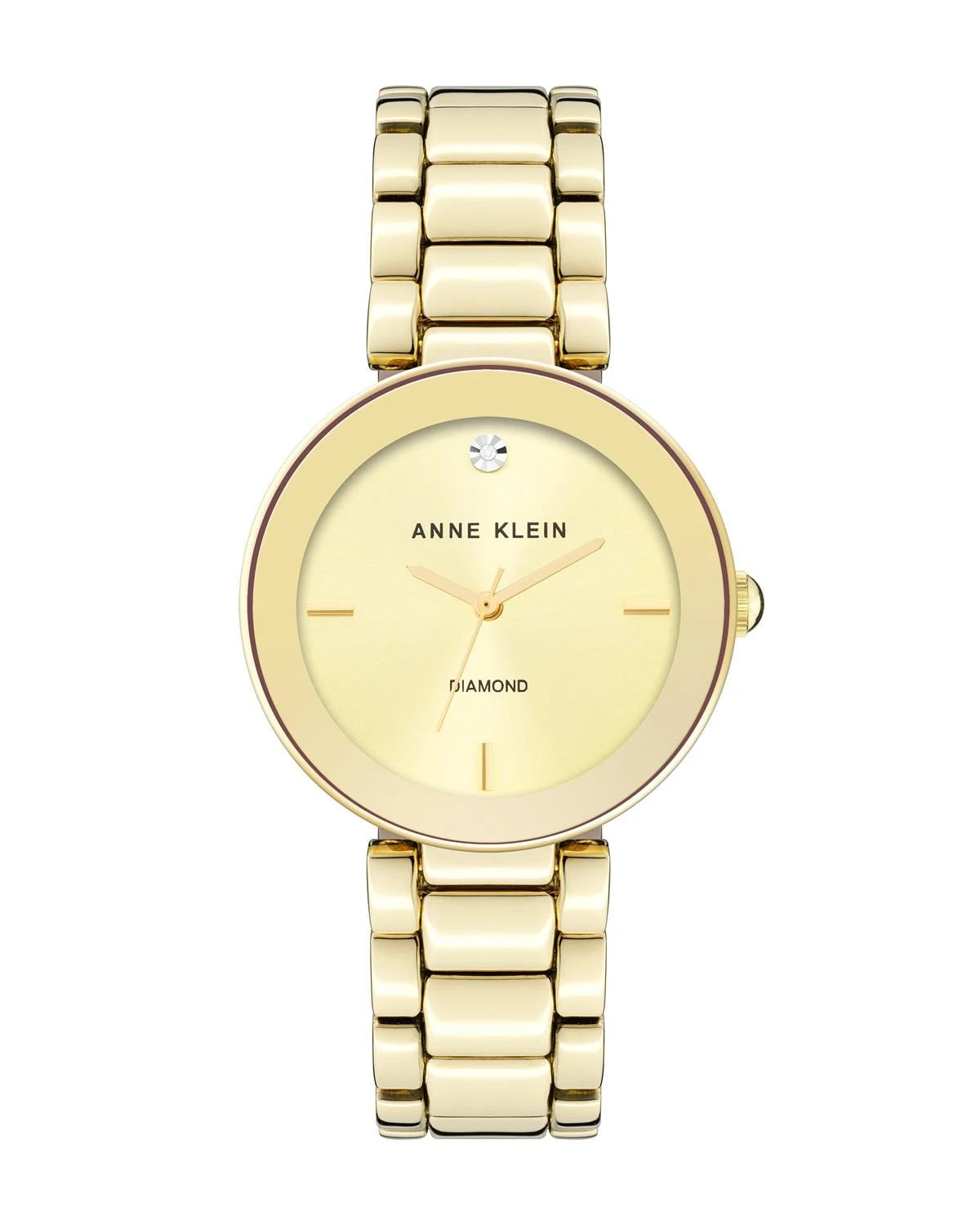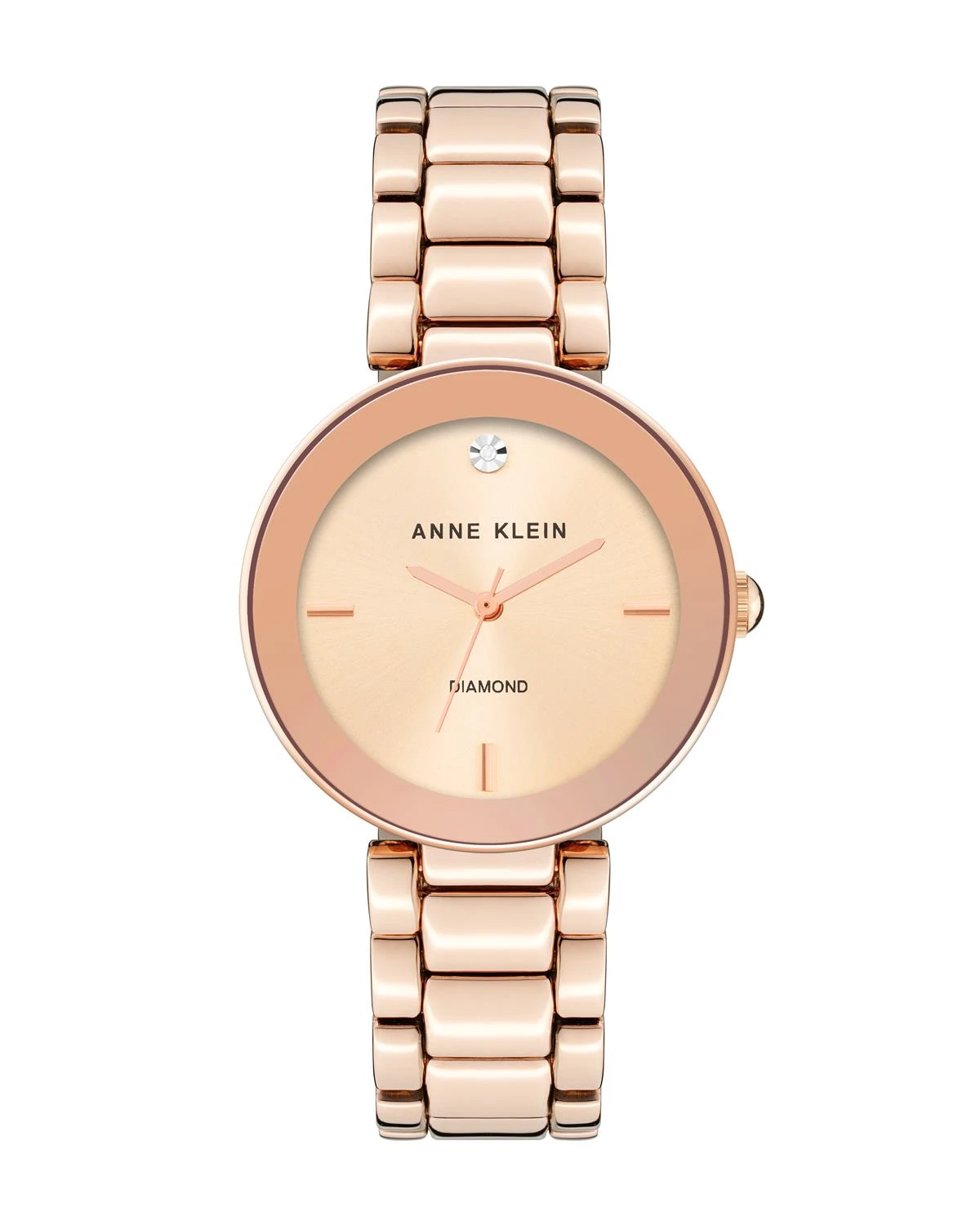An Anne Klein classic timepiece with a genuine diamond set into the 12 o’clock position.