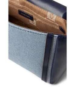 - Elevate your look, carrying the elegant and spacious Anne Klein® East/West Color-Blocked Canvas Flap Satchel Bag, featuring a timeless design.