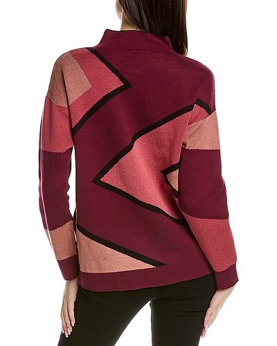 - Geo Jacquard Pullover in chianti combo with mock neck, dropped-shoulder sleeves and ribbed trim