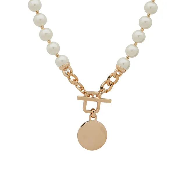 Anne Klein Goldtone And Faux Pearl Toggle Pendant Necklace