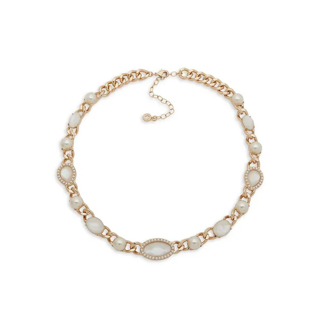 Anne Klein Goldtone & Faux Pearl Chainlink Necklace