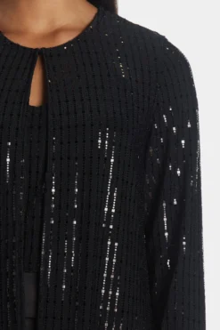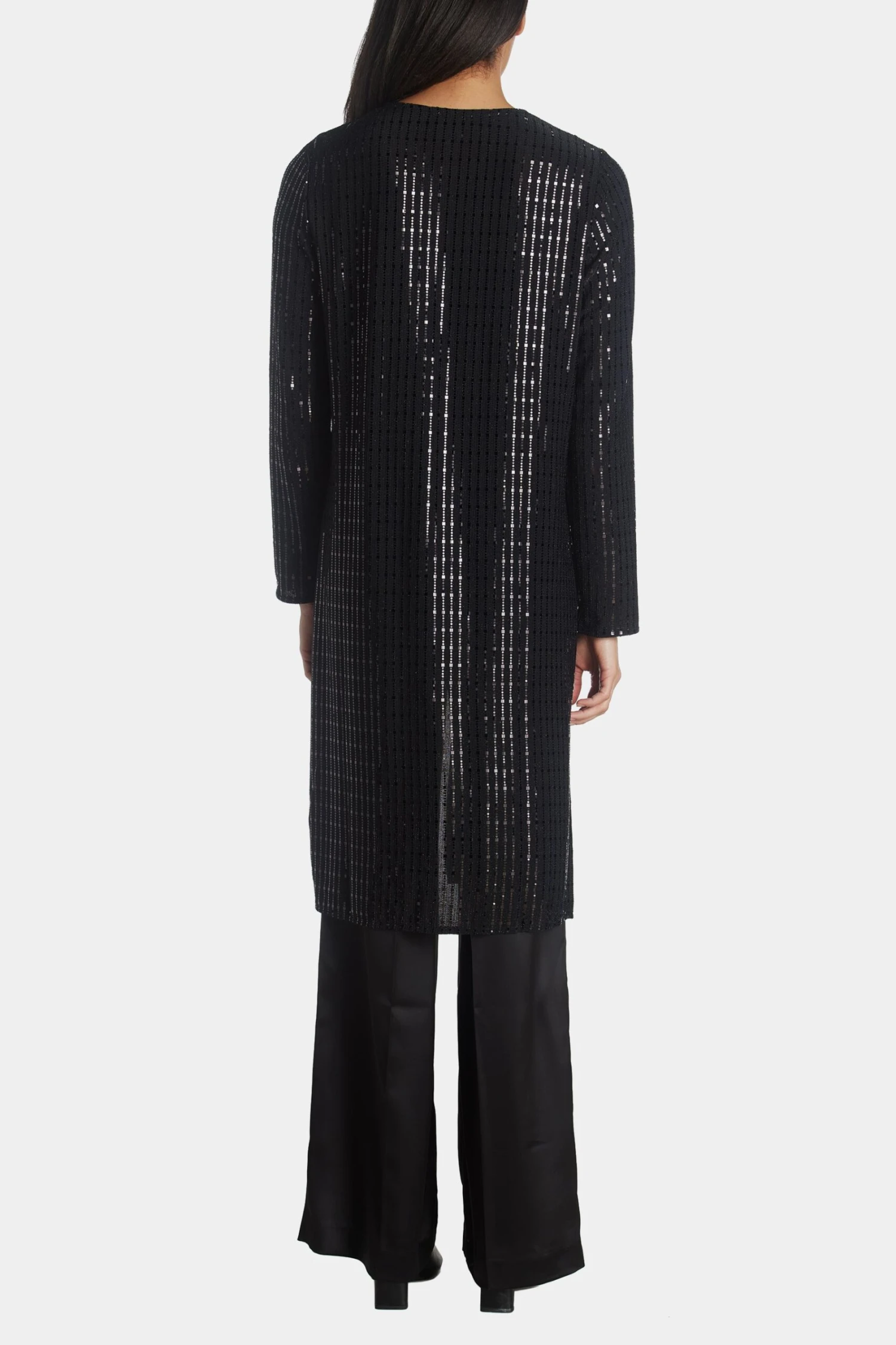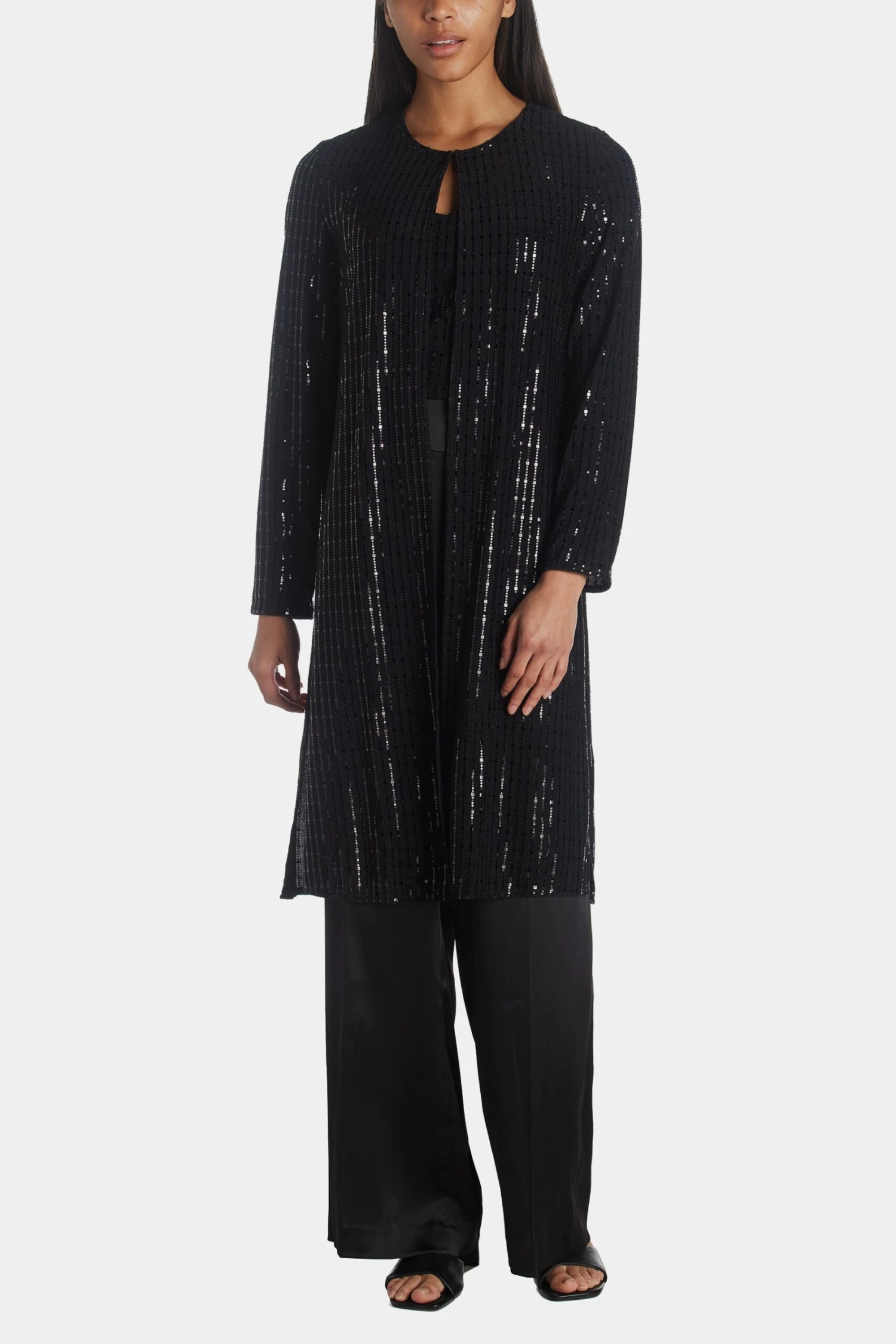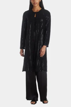 Layer this duster over your look to add radiate glamour and add some shine.