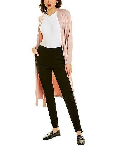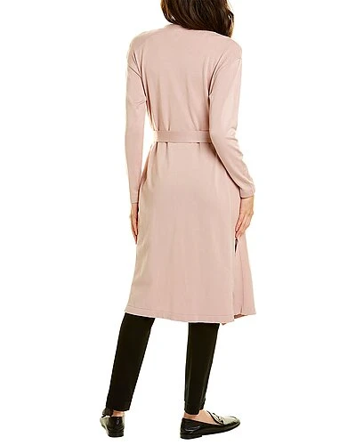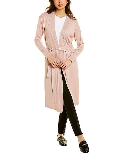 - Long Coatigan in ballet with ribbed paneling and self-tie sash at waist