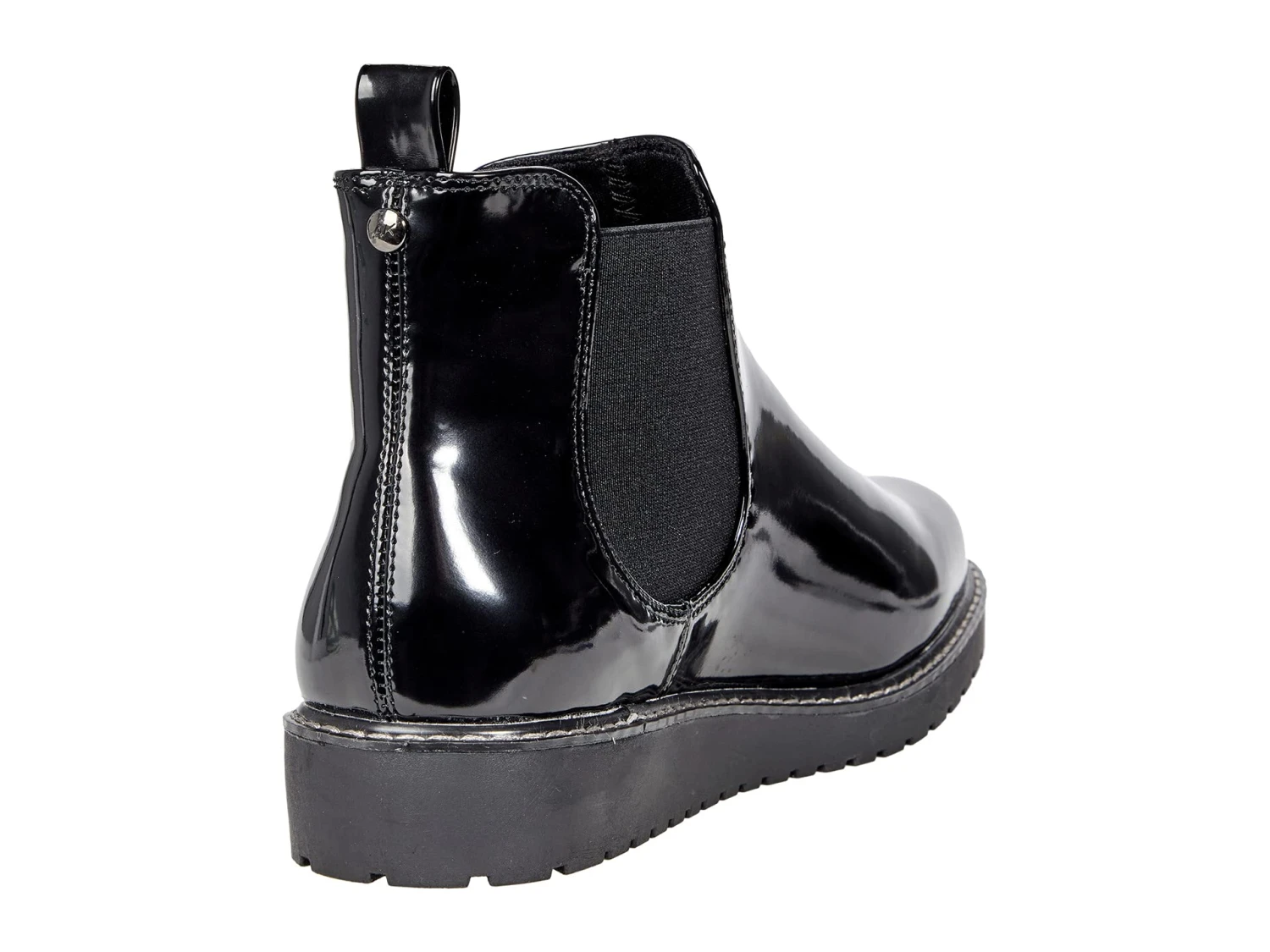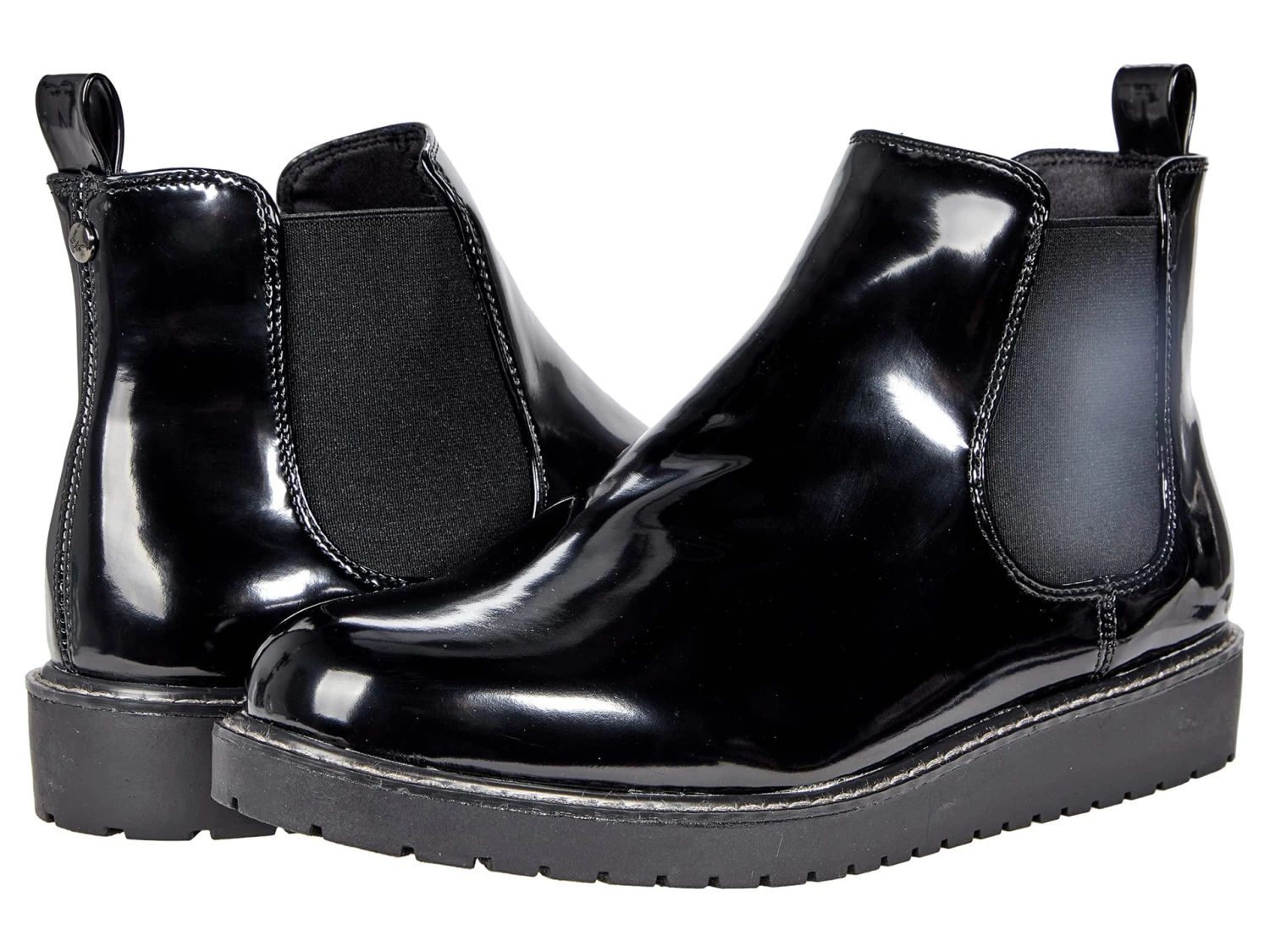 - The Anne Klein® Lucas ankle-length boots will have you waiting for the rain to arrive. Featuring a synthetic stretch panel on the sides, pull-tab at the back for easy on-and off, and a zipper at the back. Available in two color options.