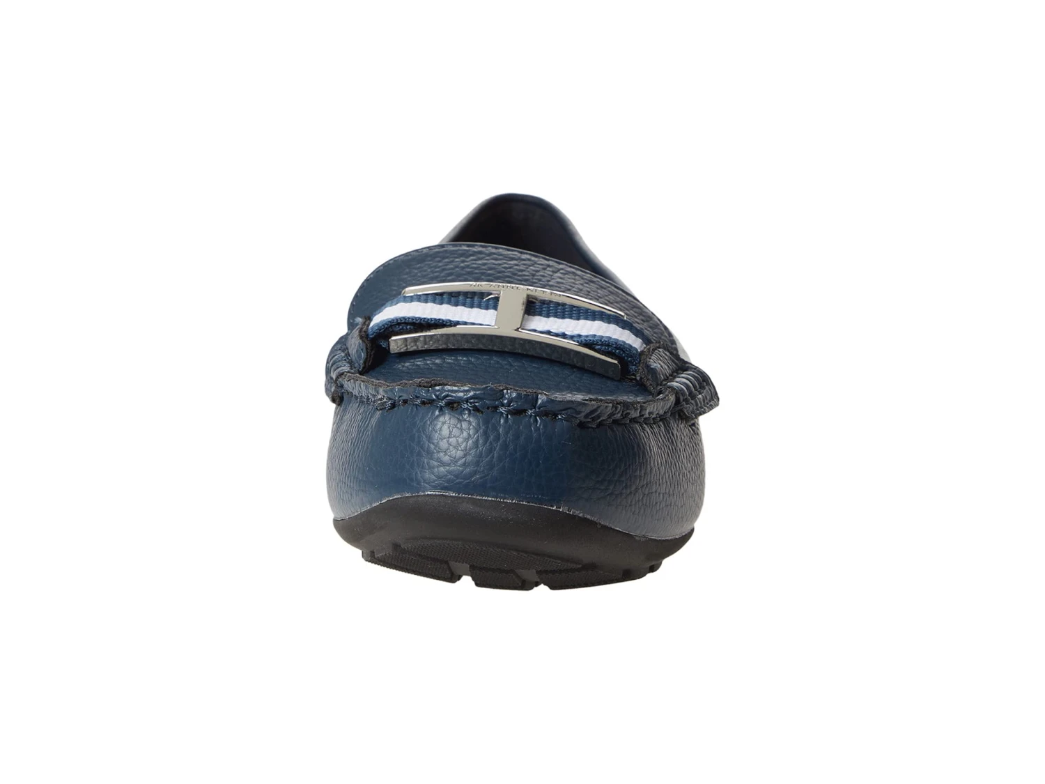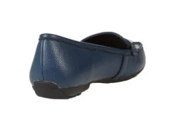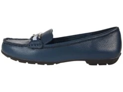 - The Anne Klein® Oakley loafer will elevate your style with a leather upper construction, striped ribbon at the vamp in a silver holder with logo embossed and rounded toe design.