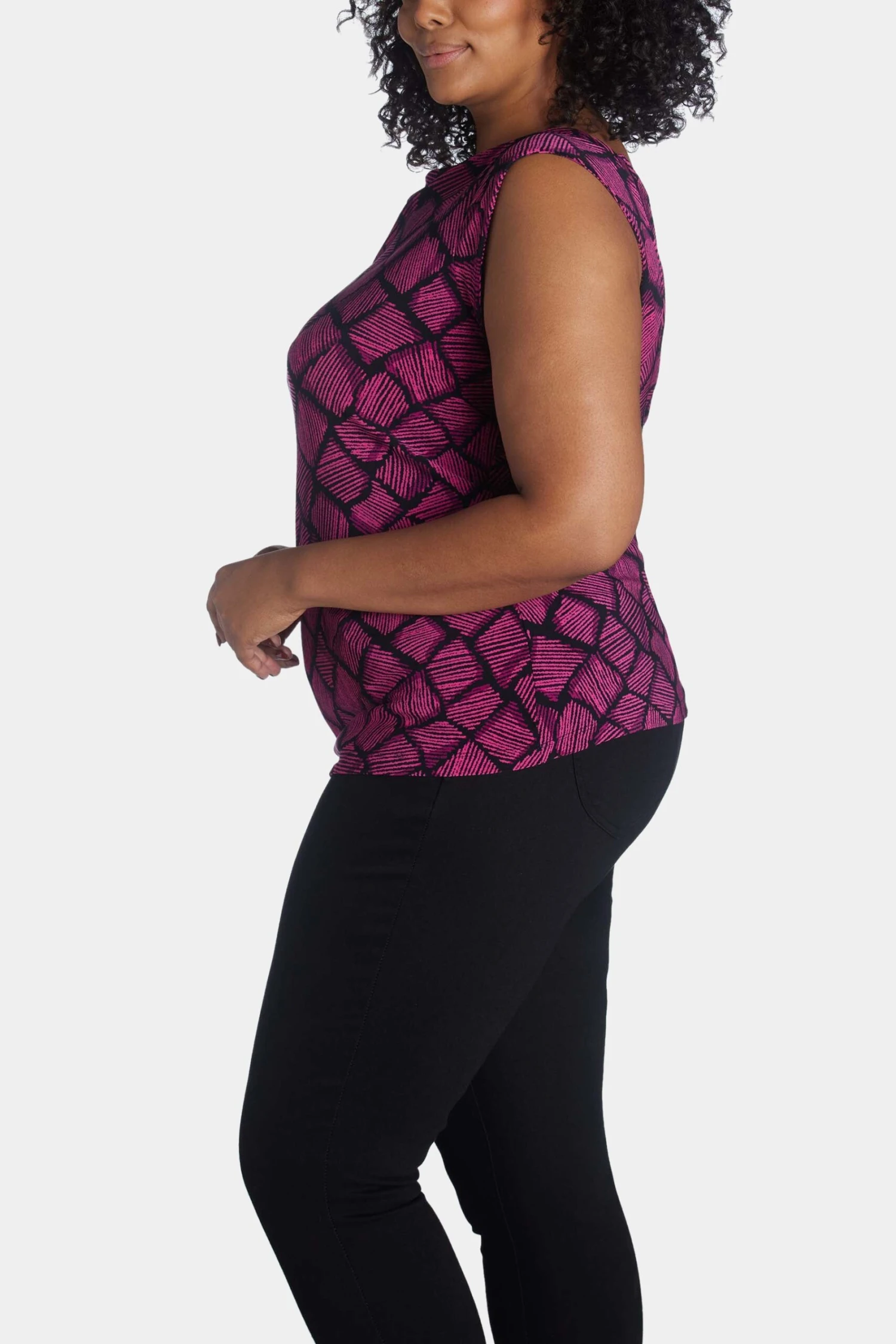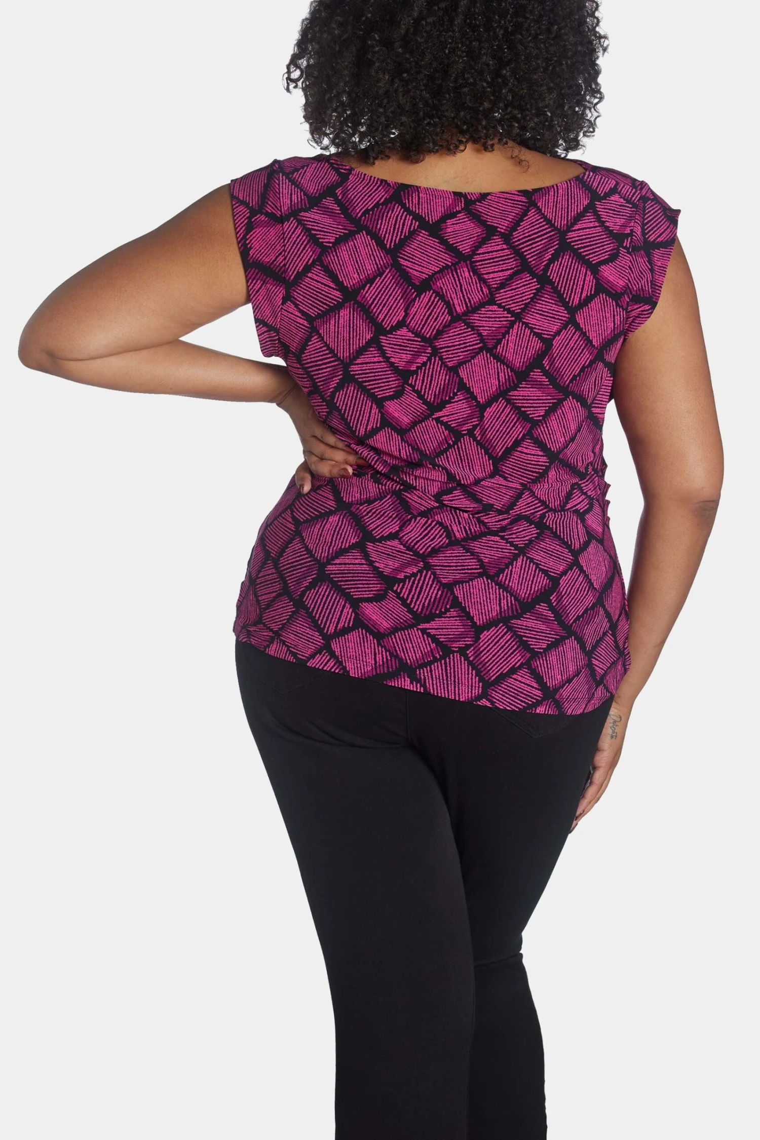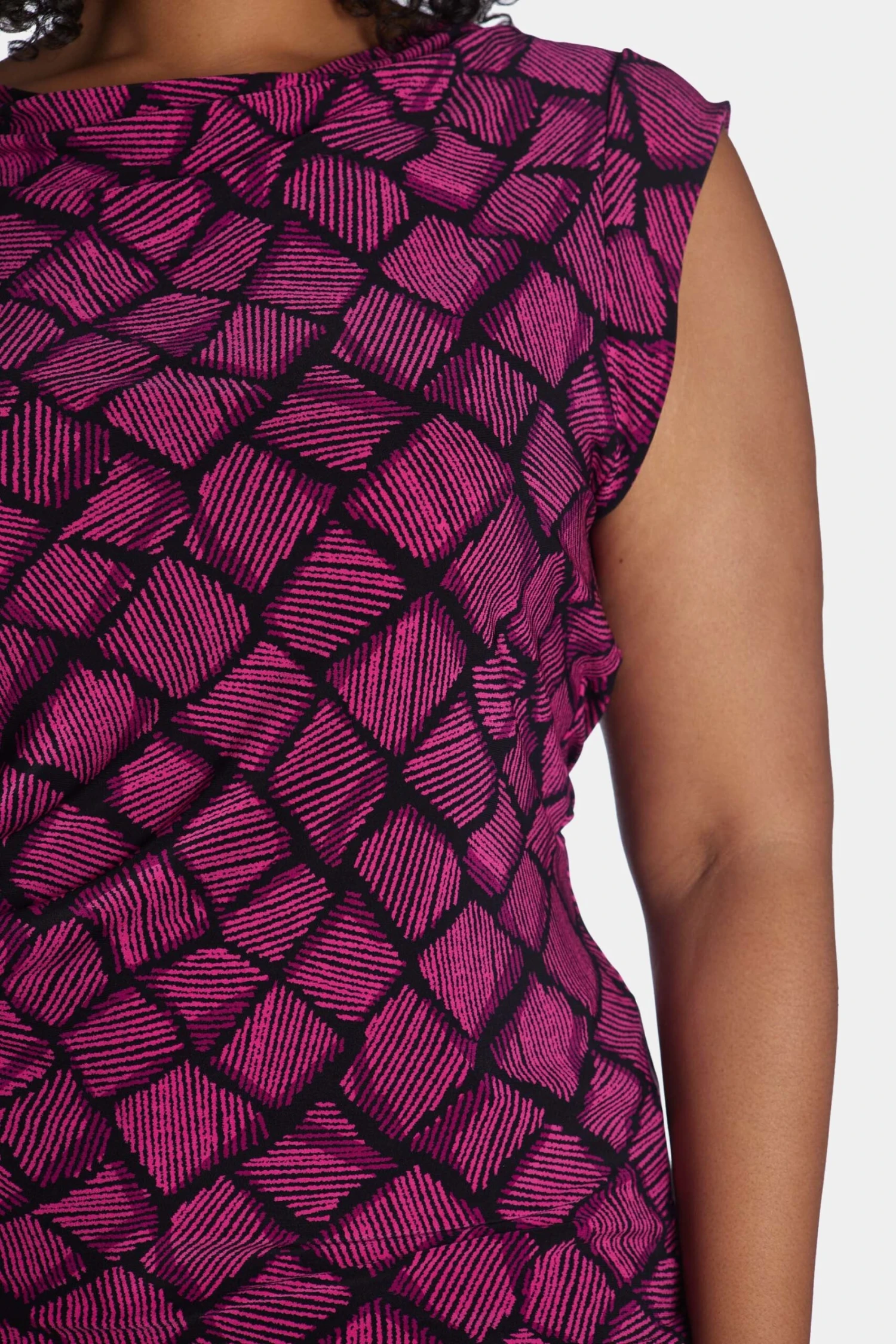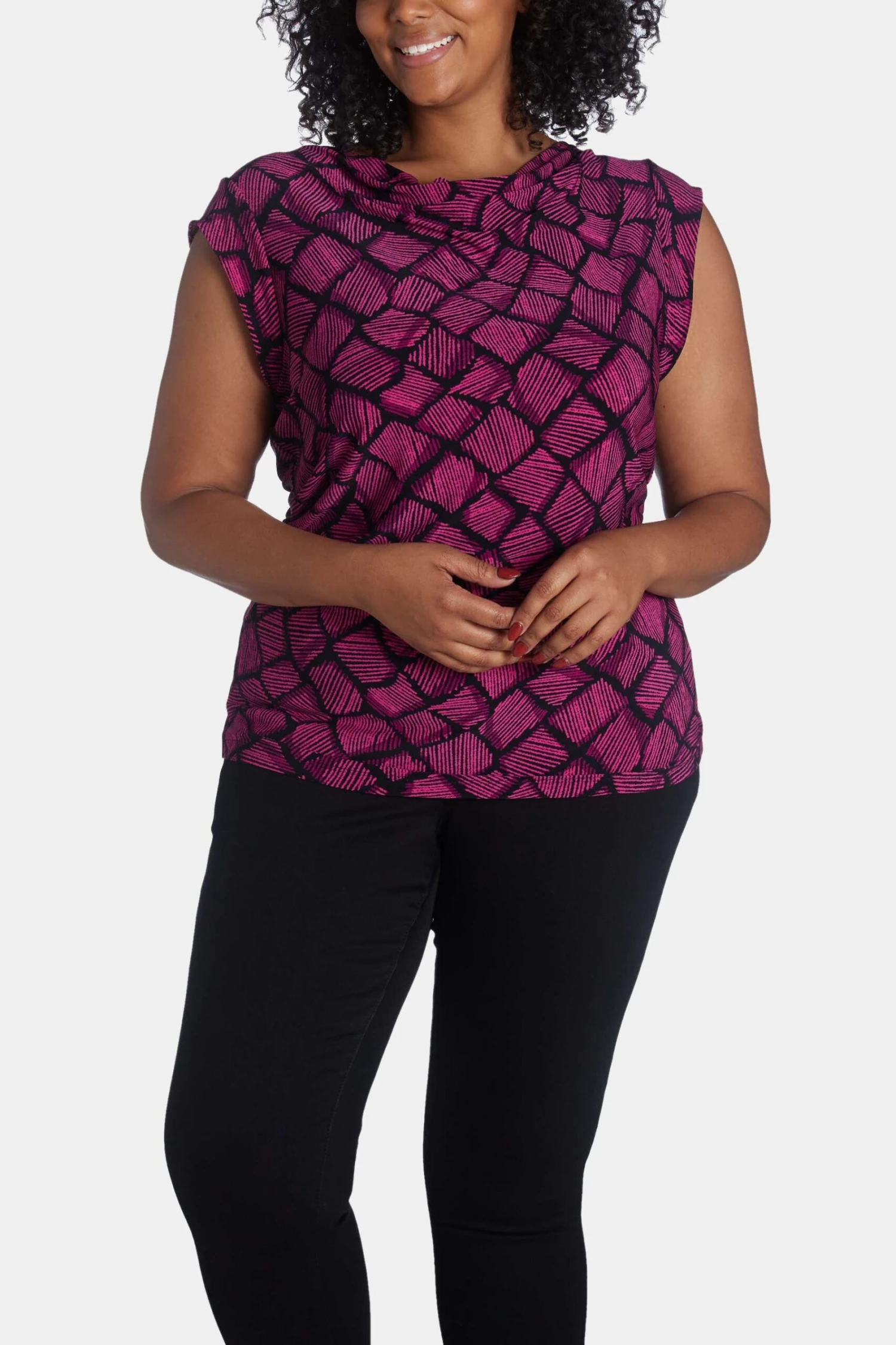 Wear this top with a jeans or layer it with a jacket, either way, you are going to flaunt that chic vibe. Featuring cap sleeves, cowl neck, and eye-catchy prints, this Printed Ity Cap Sleeve Top is a must-have.