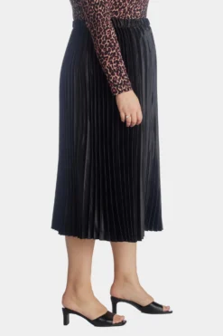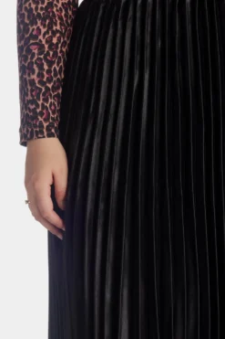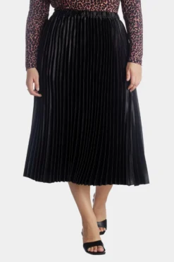 Smooth to the touch, this flowing pleated satin maxi skirt offers radiance and elegance to your feminine need.