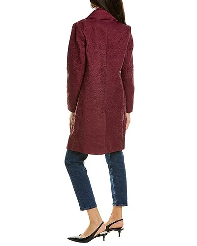 - Quilted Trench Coat in chianti with notch collar, dual front pockets, and vented back hem