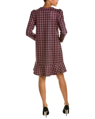 - Ruffle Hem Shift Dress in chianti and anise combo with puff sleeves