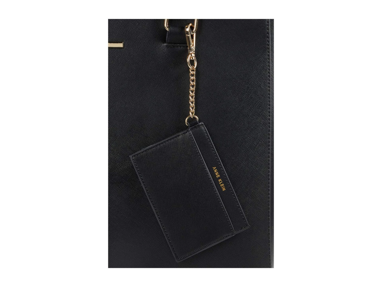 - Anne Klein® Saffiano Work Tote features a classic style tote finished in genuine leather including a water-bottle carrier inside and zip-closure pouches for all the essentials.