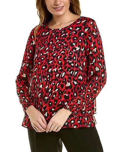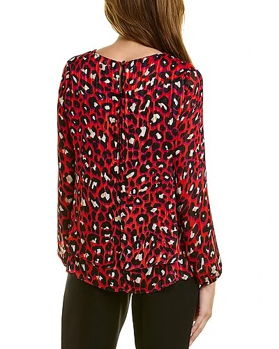 - Satin Blouse in red leopard print with elasticized cuffs, balloon sleeves