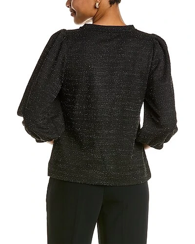 - Shimmer Tweed Top in black with 3/4-length balloon sleeves