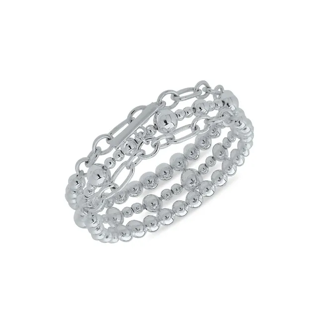 Anne Klein Silvertone Multi-Row Chainlink And Bead Stretch Bracelet