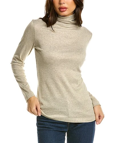 - The Seamless Turtleneck in heather grey & gold with metallic design