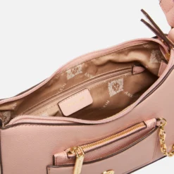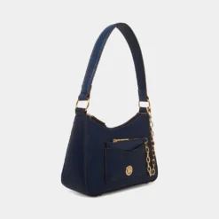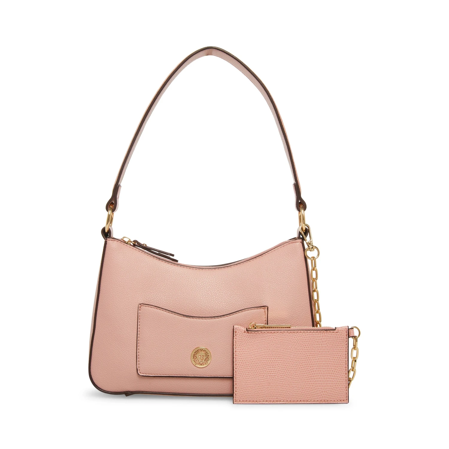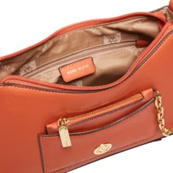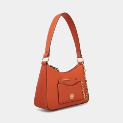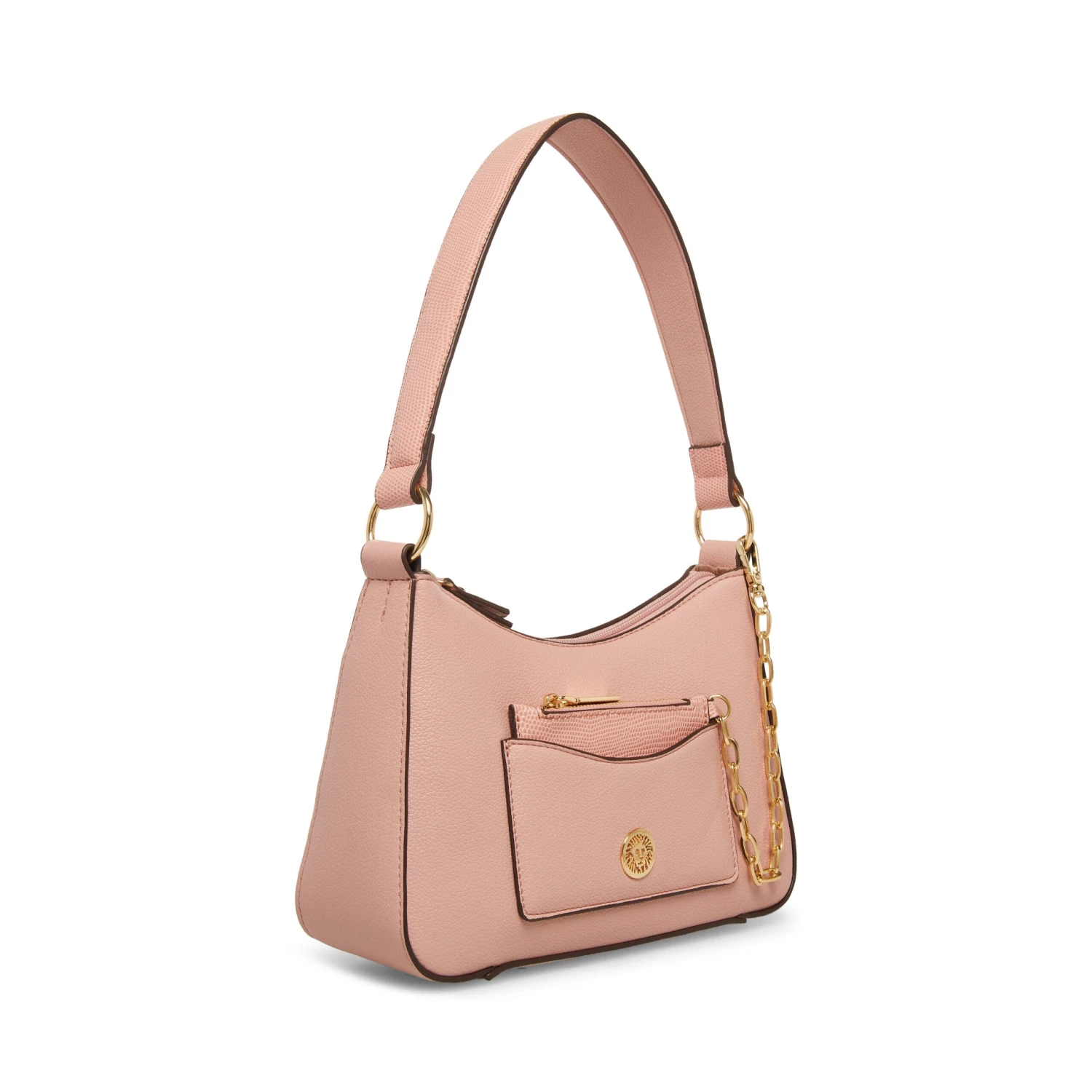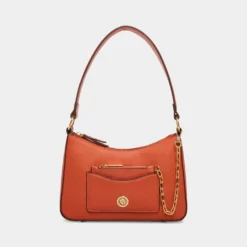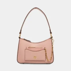 Keep it cool and airy this season in one of our new fashion colors with a dash of texturized faux lizard fun. This bag displays its pretty swag chain and has a removeable card case as its main feature. This shoulder bag comes with a top zip closure for the protection of your belongings.