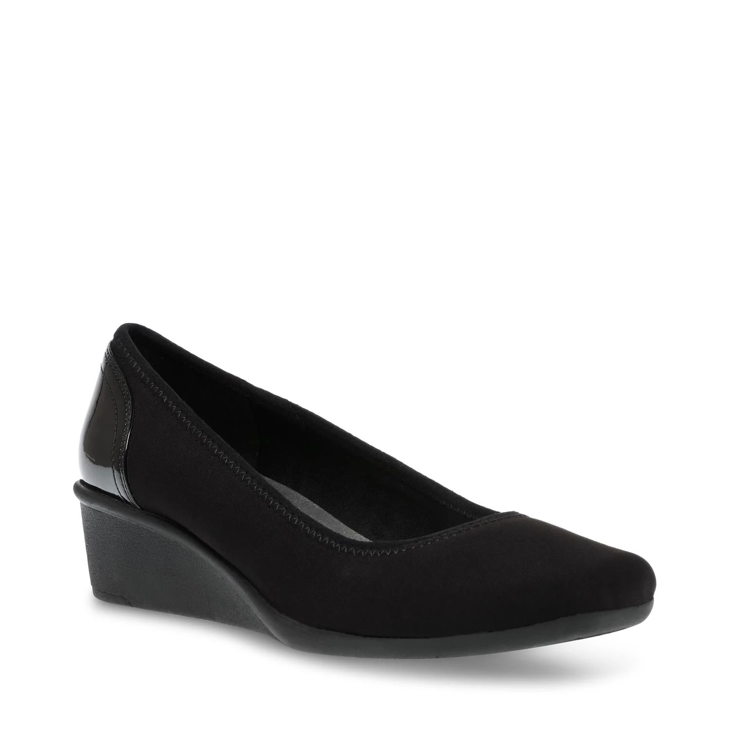 The Anne Klein Wisher Wedge is a comfortable go-to heel in a sporty, stretchy fabric that strikes the perfect balance of timeless and trendy.